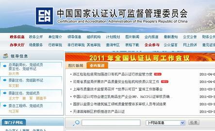 (二)通過國家認監(jiān)委(CNCA)網站查詢 1、登陸CNCA網站www.cnca.gov.cn,進入國家認監(jiān)委網站首頁;