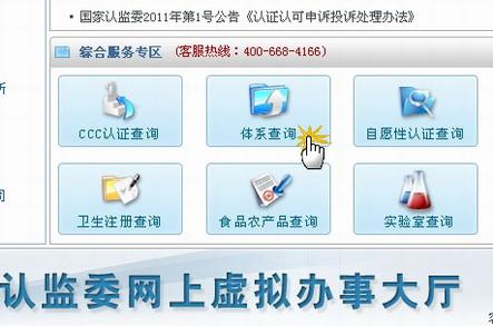 2、于首頁中部“綜合服務專區(qū)”,點擊“體系查詢”,進入體系查詢頁面;