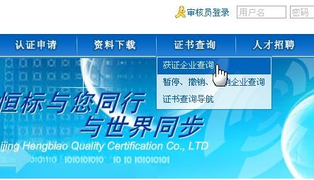2、鼠標移動到網站導航條“證書查詢”上彈出下拉菜單,點擊下拉菜單中的“獲證企業(yè)查詢”;